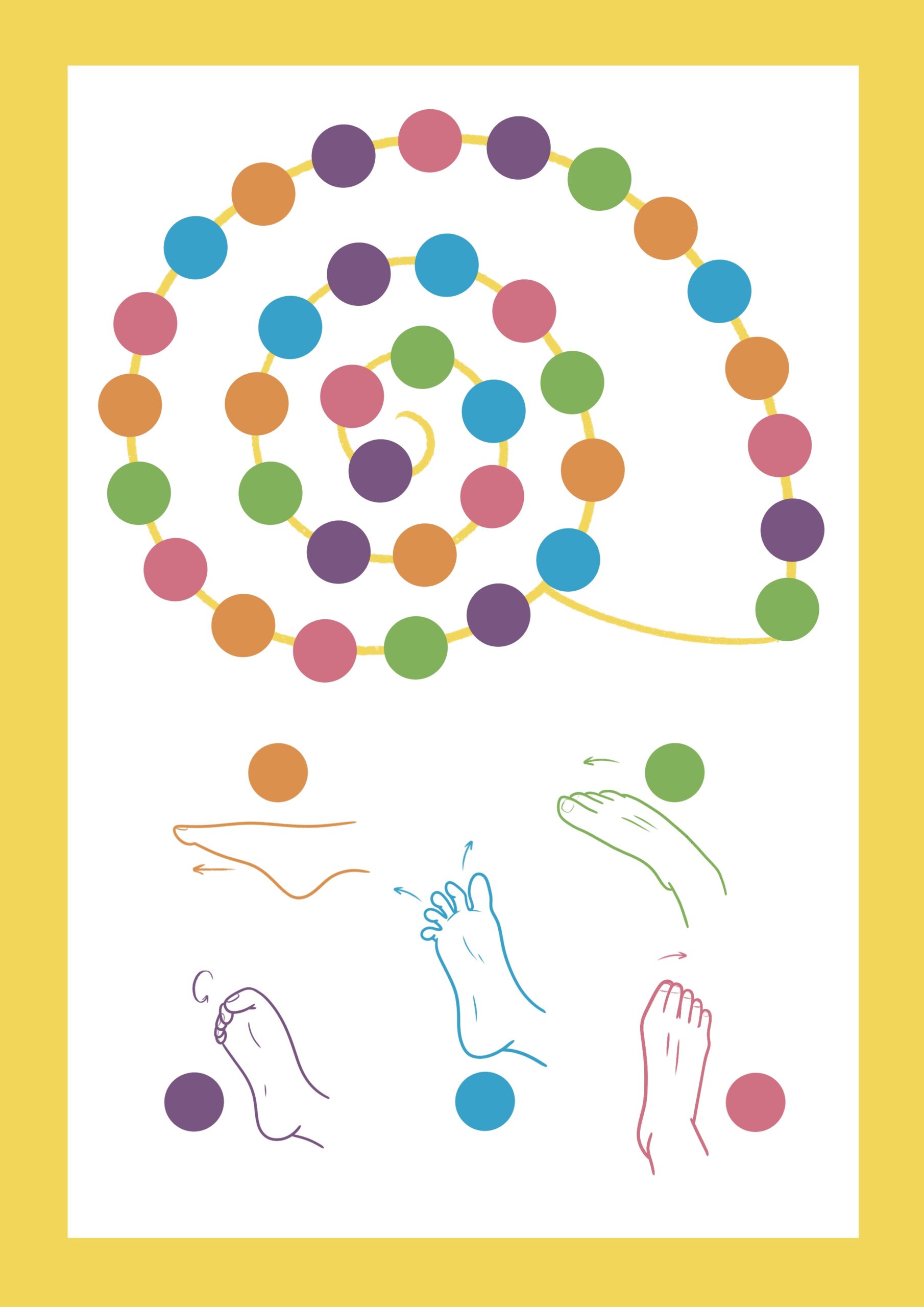 - Ilustrace k aktivitám Dětská noha. Sada aktivit a pracovních listů podporuje zdravý vývoj dětských nohou a je zaměřená na posílení klenby, zlepšení koordinace a rozvoj jemné motoriky. Materiály usnadňují rodičům i lektorům začlenit jednoduchá cvičení do běžného dne a přispívají k prevenci častých potíží spojených s vývojem nohou u dětí.
